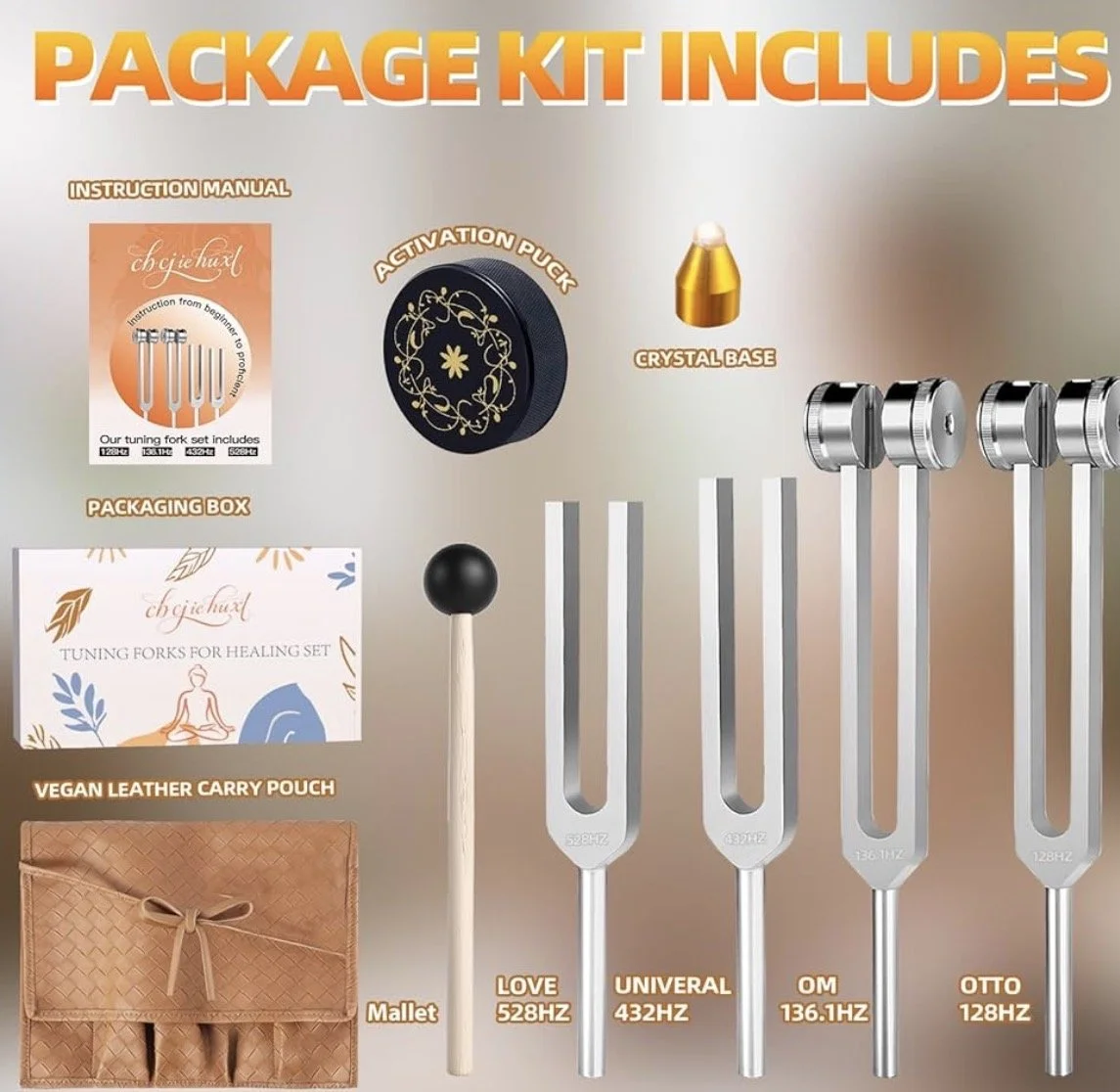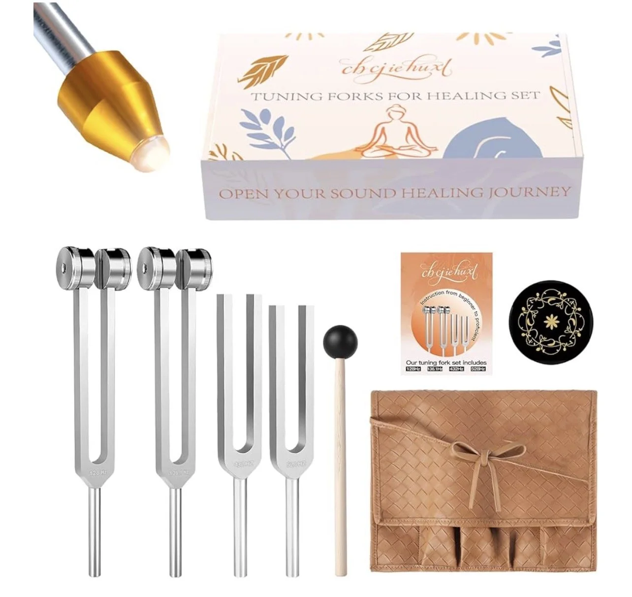 Tuning Forks for Healing Set- Includes(528Hz, 432Hz, 136.1Hz, 128Hz), with Vegan Leather Pouch &Activator, For Chakra Balance/Sound Therapy/Yoga/Meditation/Stress& Relaxation